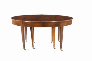 Tavolo allungabile lastronato in piuma di mogano, XIX secolo
