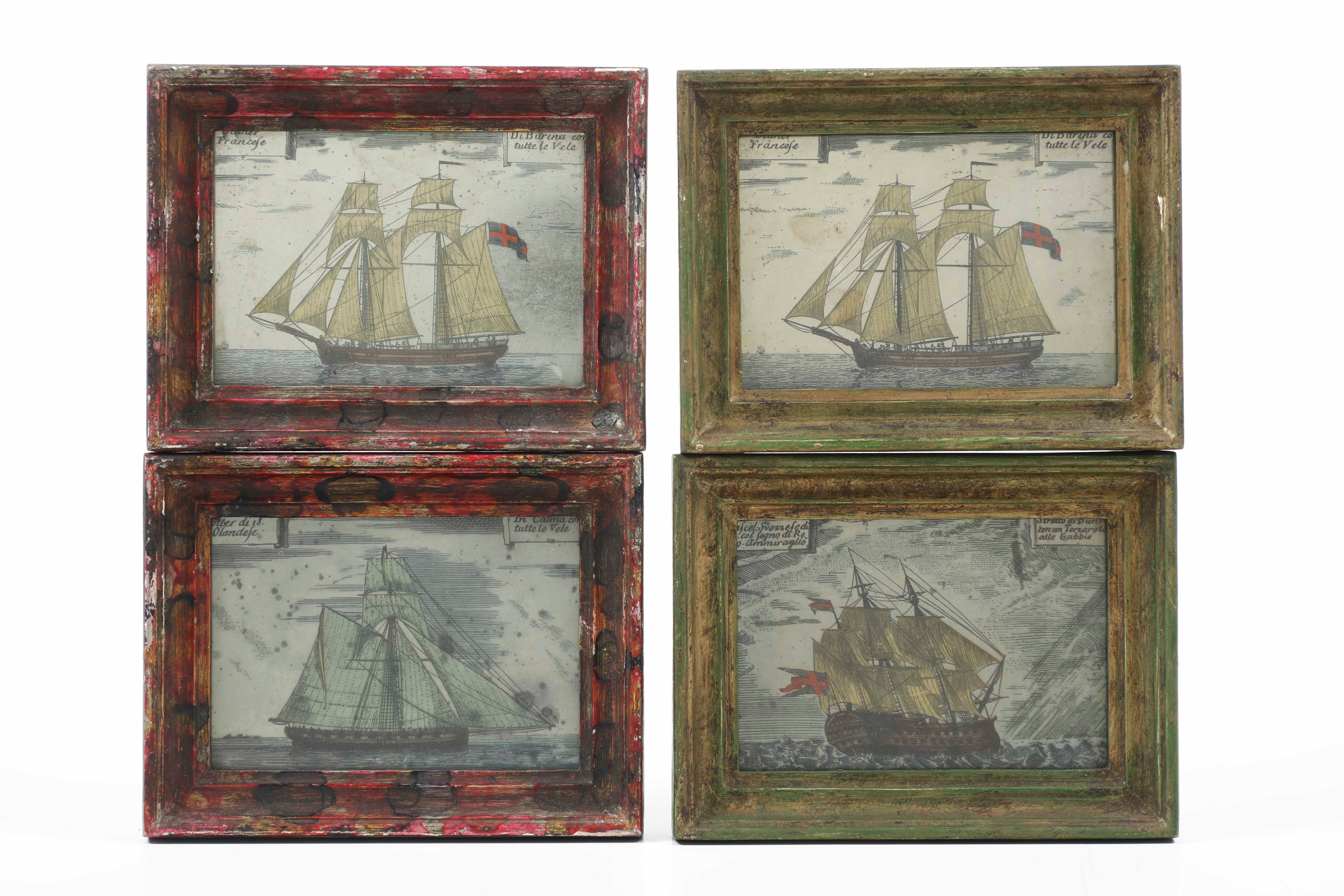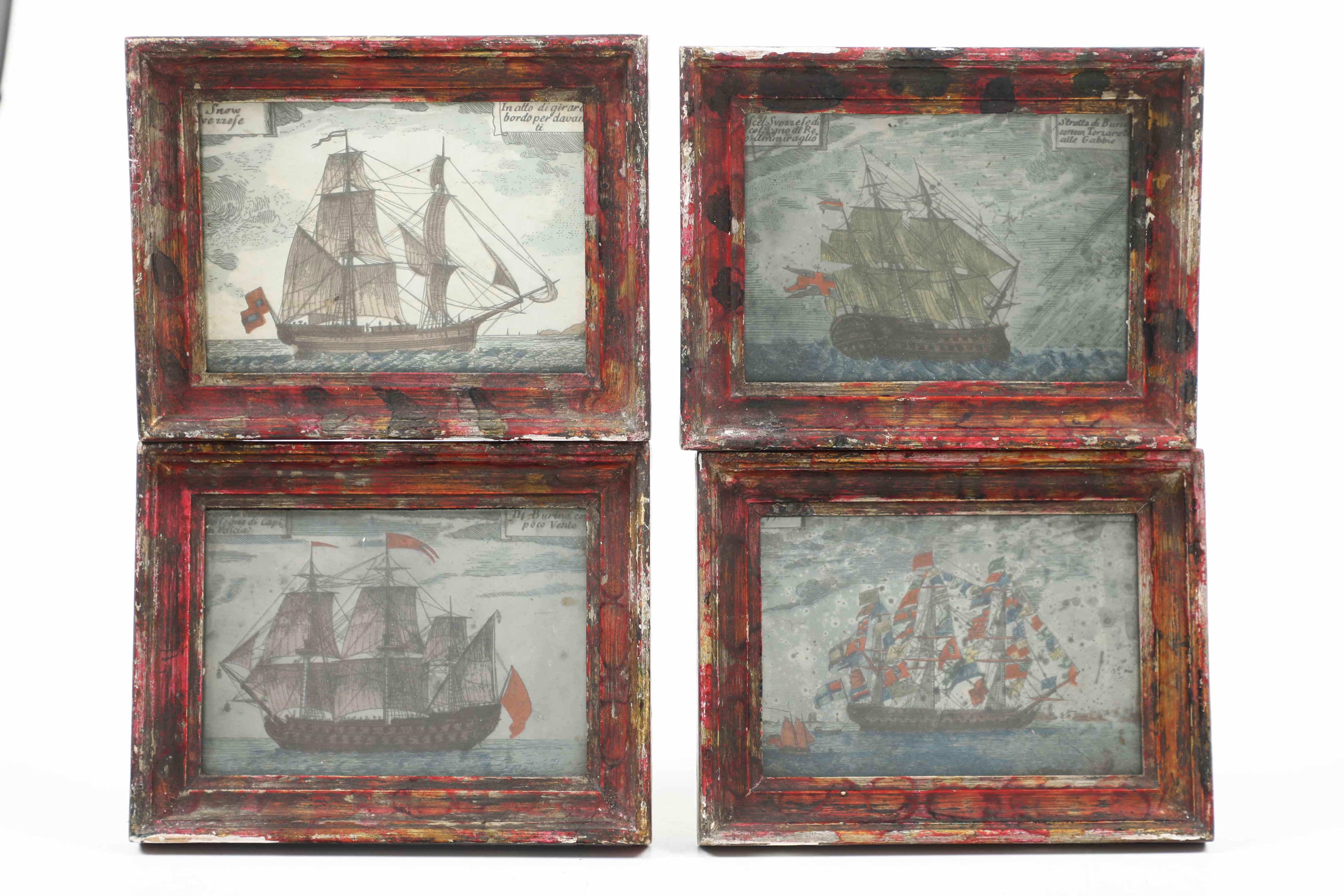 Gruppo di otto dipinti su vetro a tema marinaro