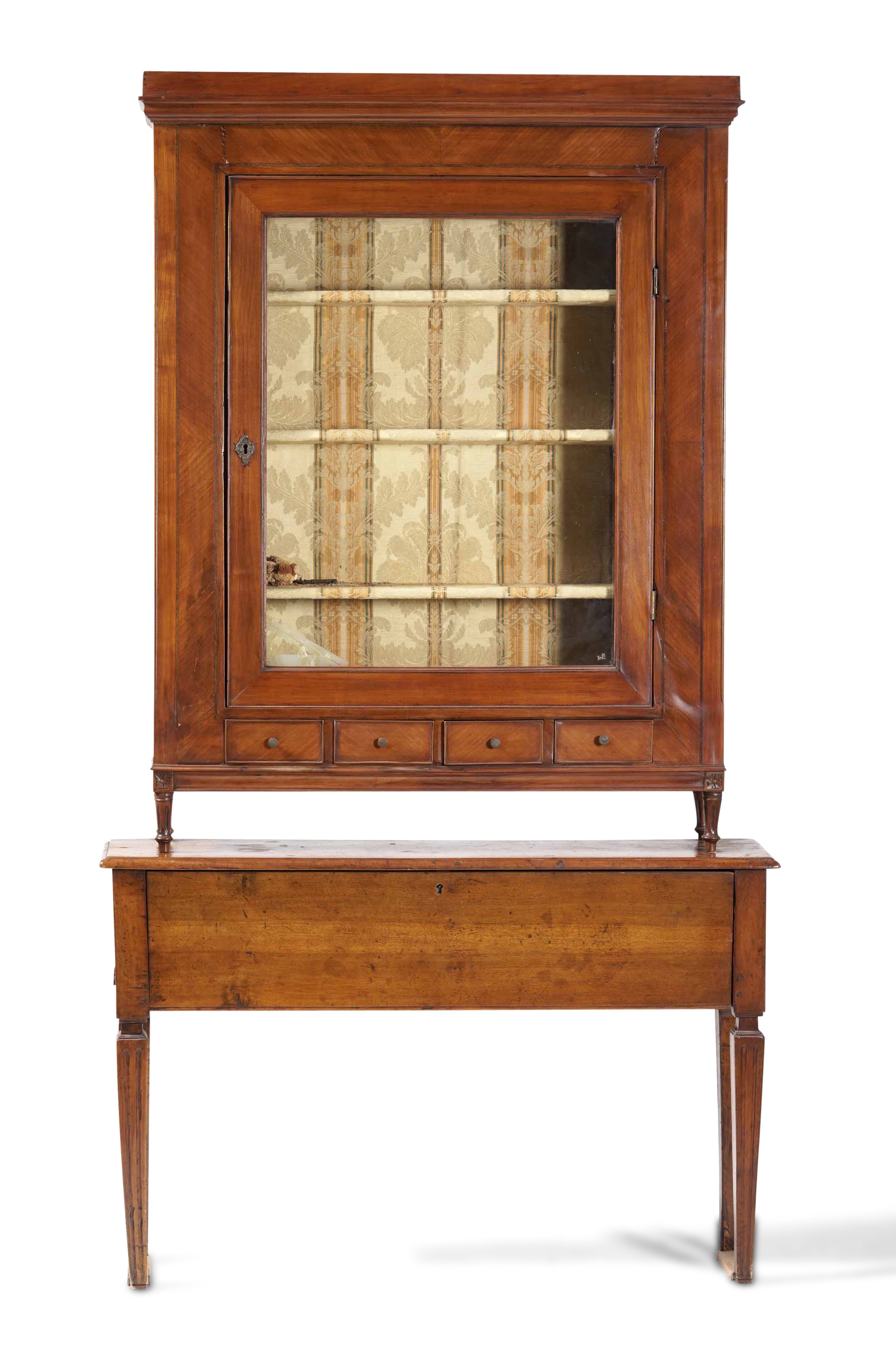 Insieme composito costituito da una consolle Luigi XVI genovese in legni vari e [..]