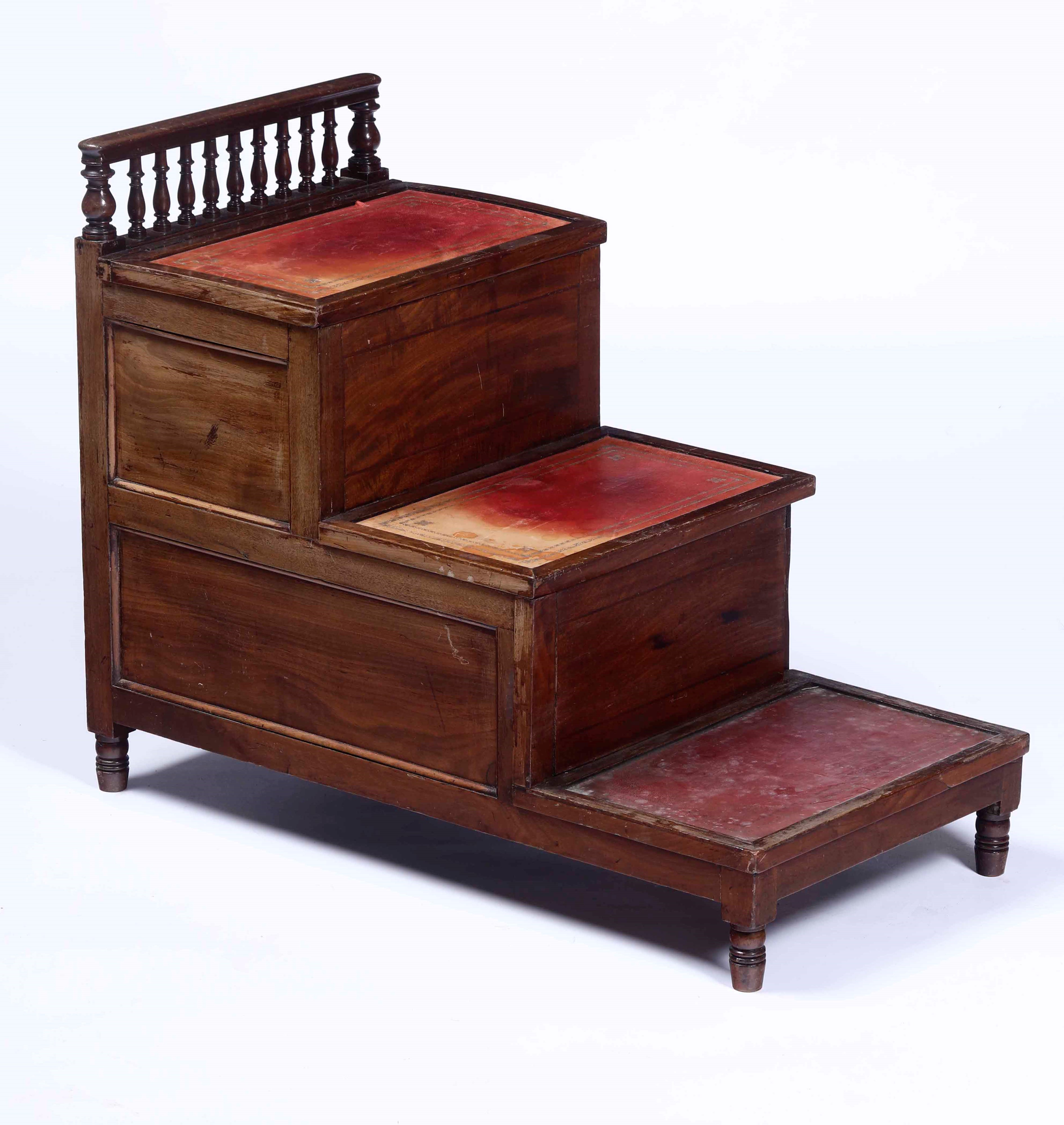 Lotto composto da una scaletta in legno, un piccolo baule e una base munita di r [..]