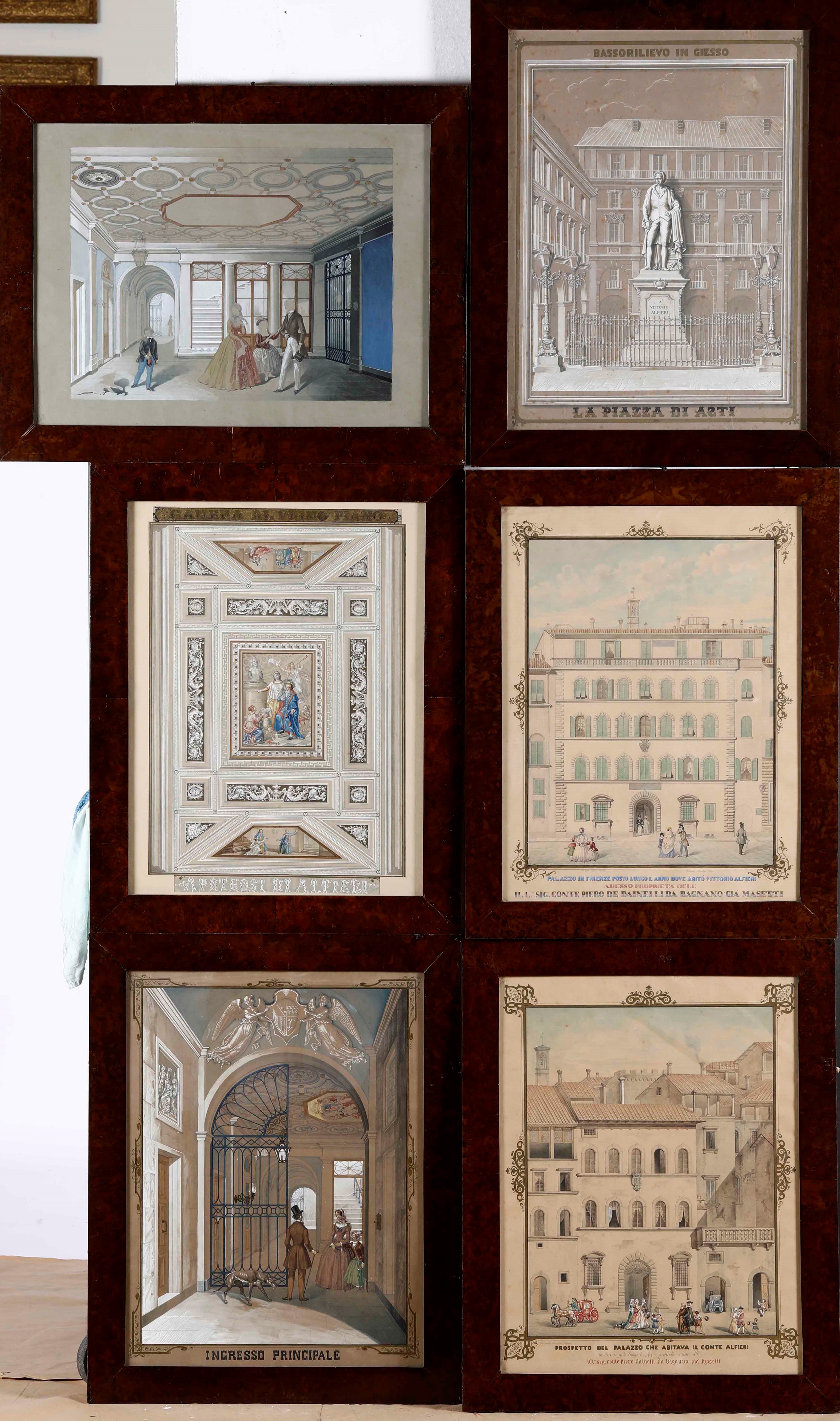 Lotto di sei stampe acquerellate