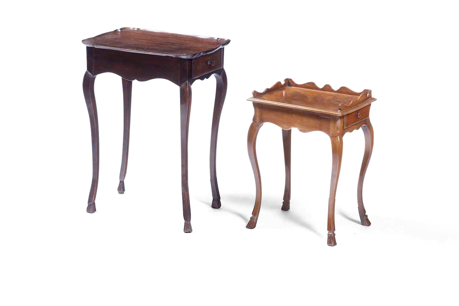 Lotto di un tavolo da centro in noce ad un cassetto laterale e un tavolino più piccolo [..]