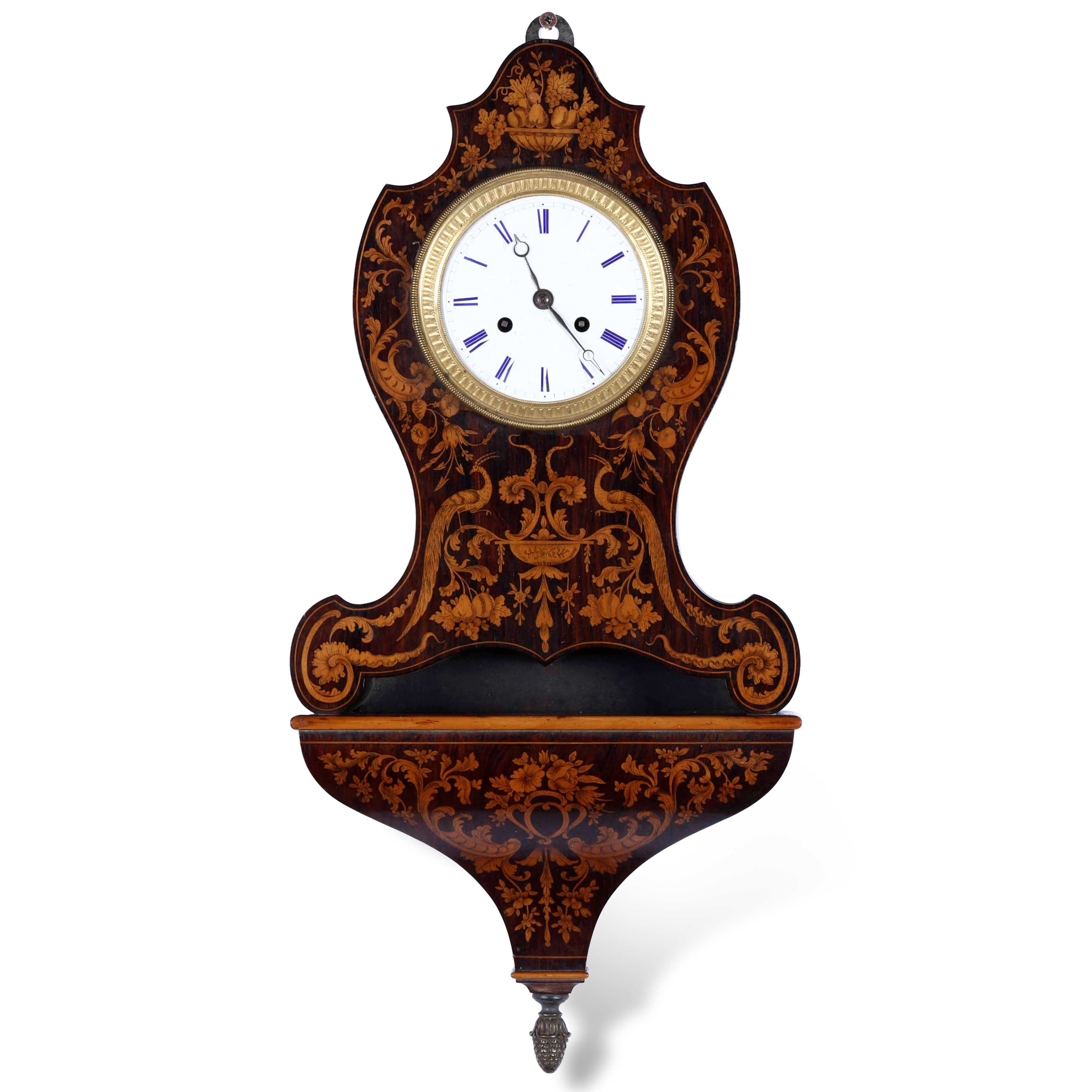Pendola da muro Carlo X in legno intarsiato. XIX secolo