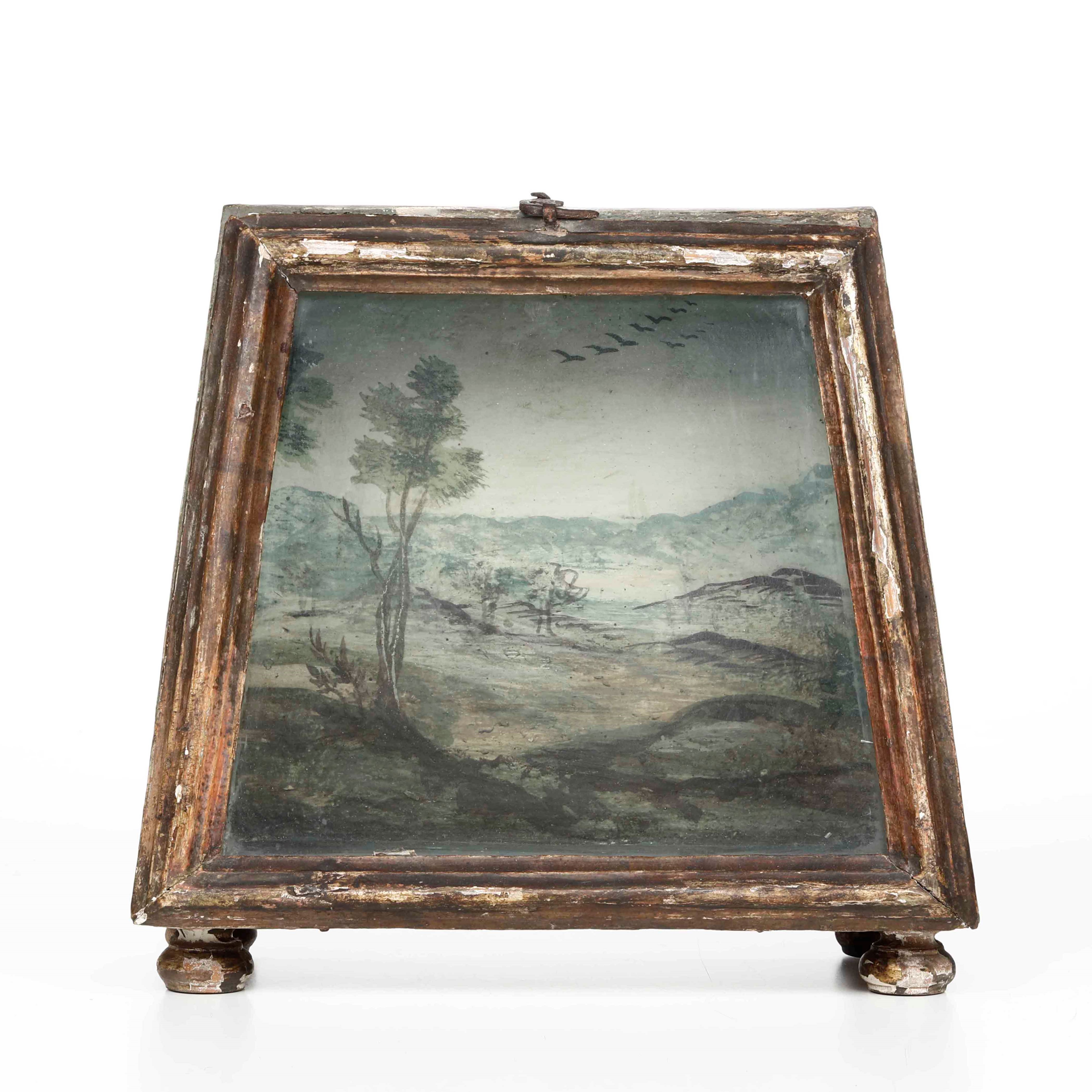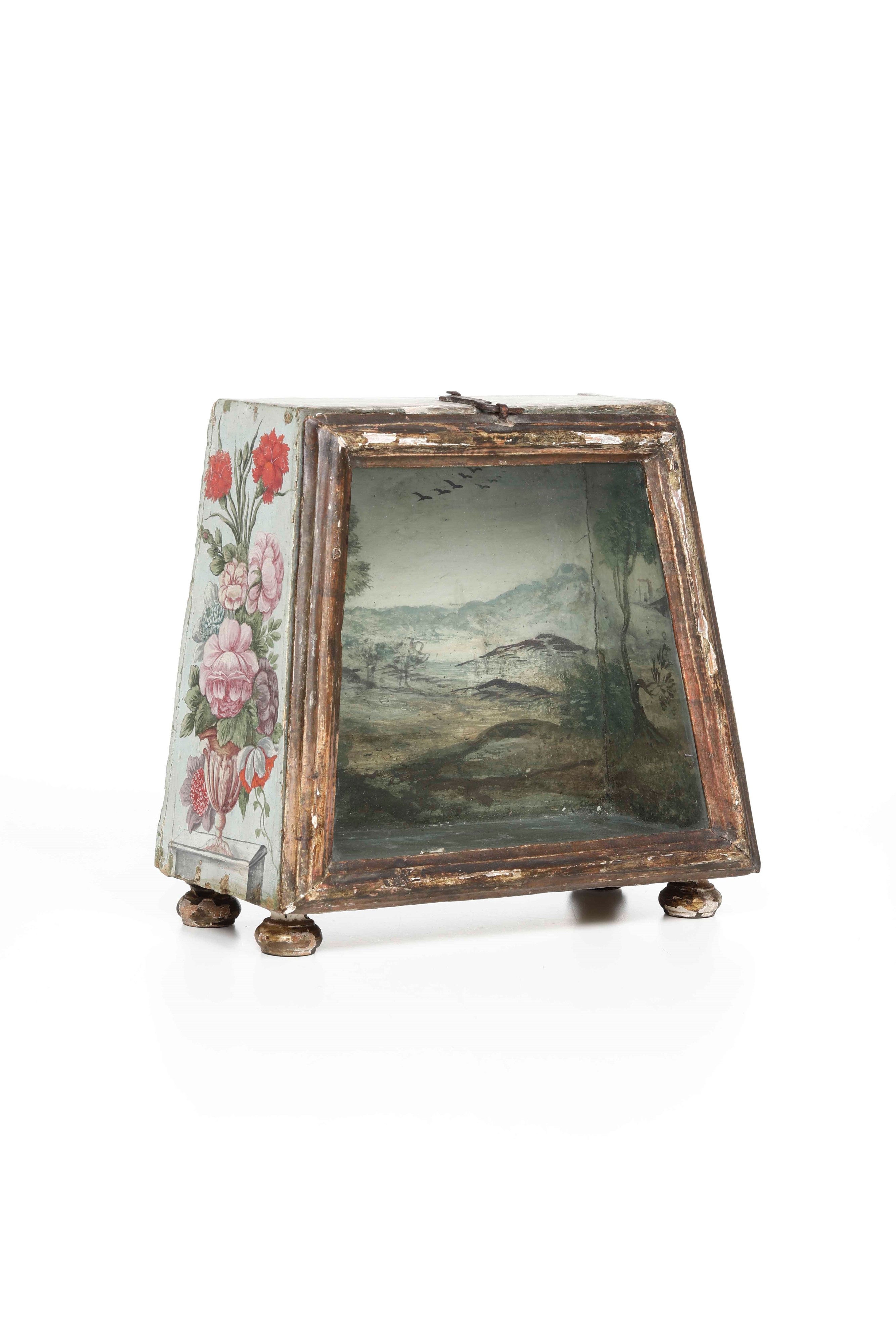 Piccola vetrina in legno laccato e dipinto. Genova XVII secolo