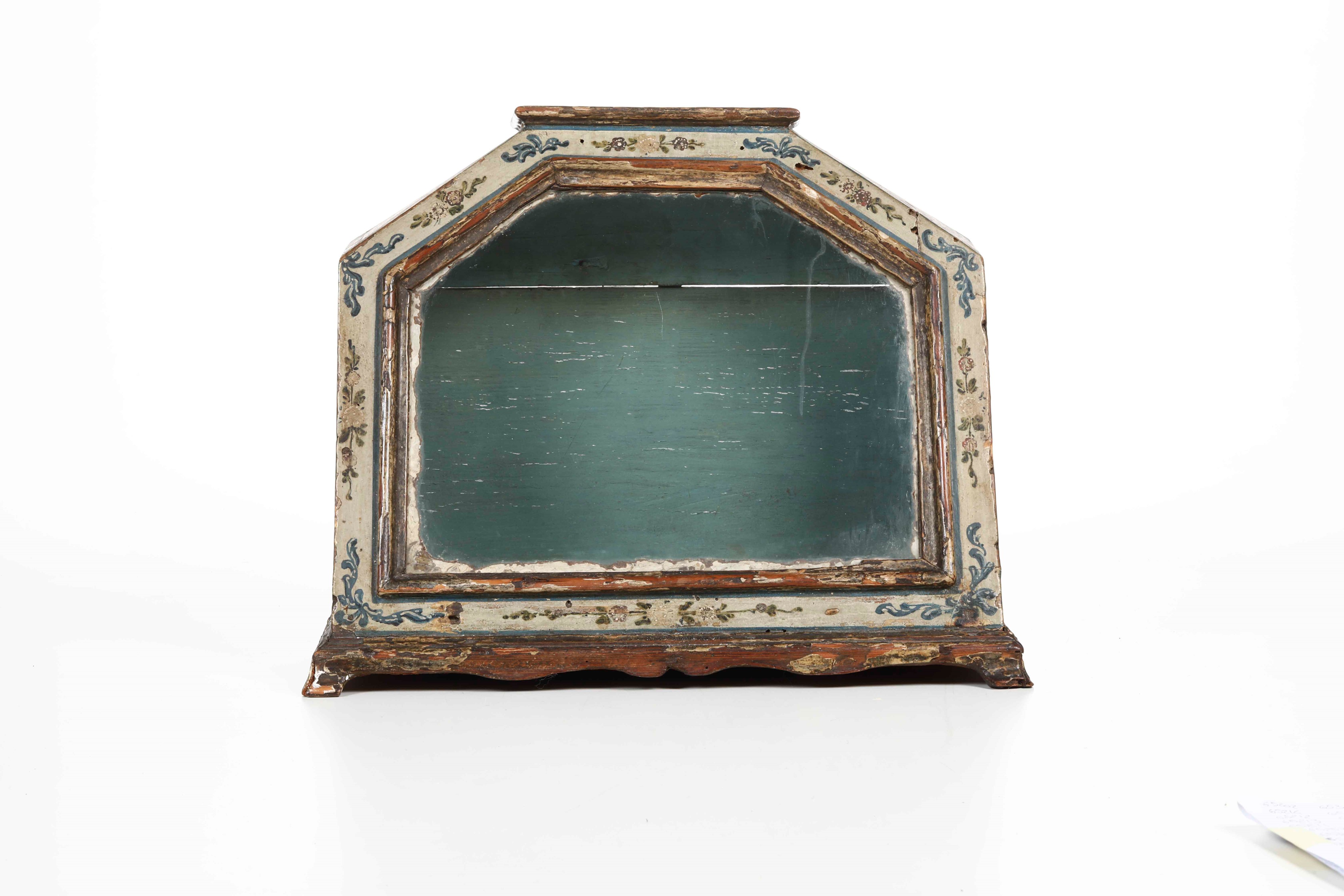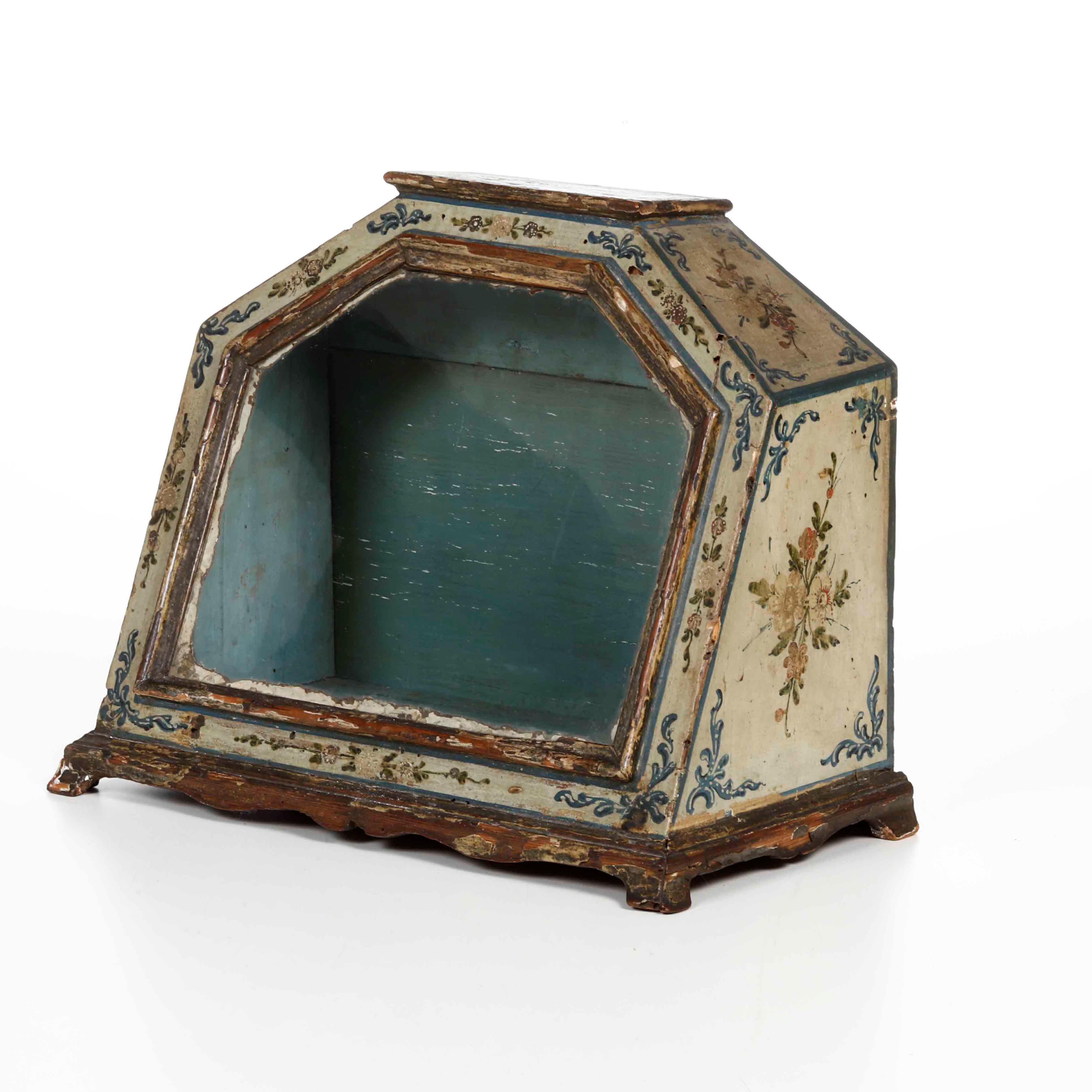 Piccola vetrina in legno laccato e dipinto. Genova XVII secolo