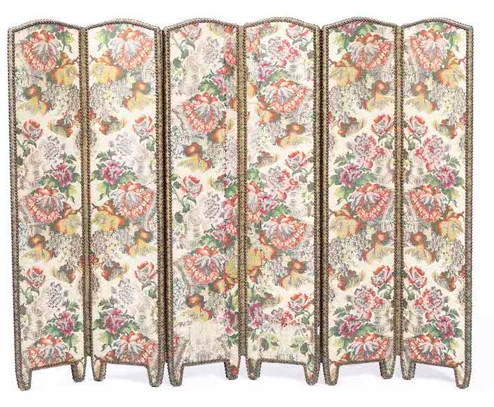 Piccolo paravento a sei ante in tessuto ricamato a fiori