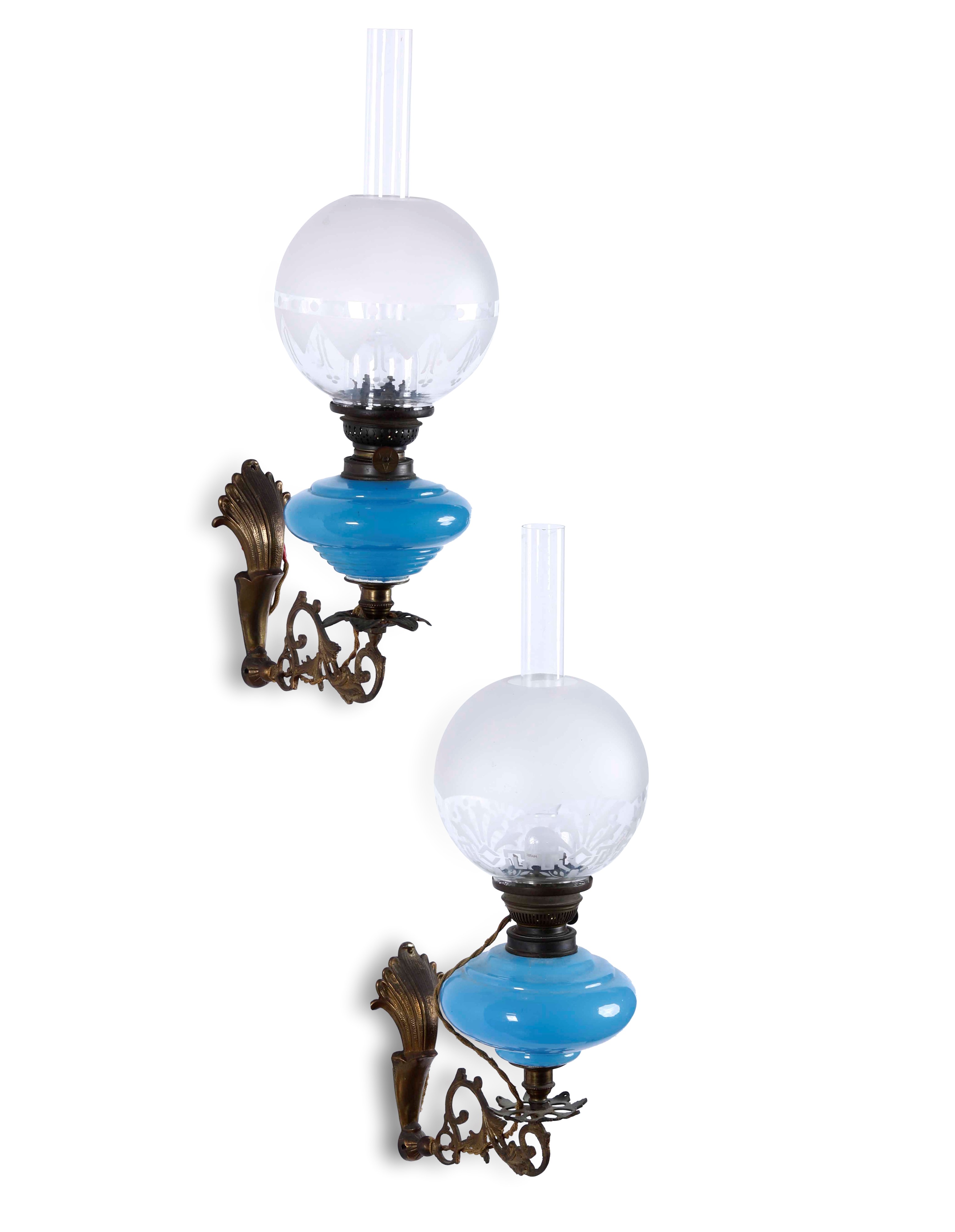 Quattro appliques con struttura in metallo dorato e diffusore in vetro, inizio XX [..]