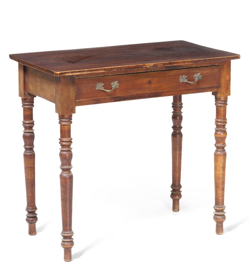 Tavolino con gambe tornite a un cassetto. XIX secolo