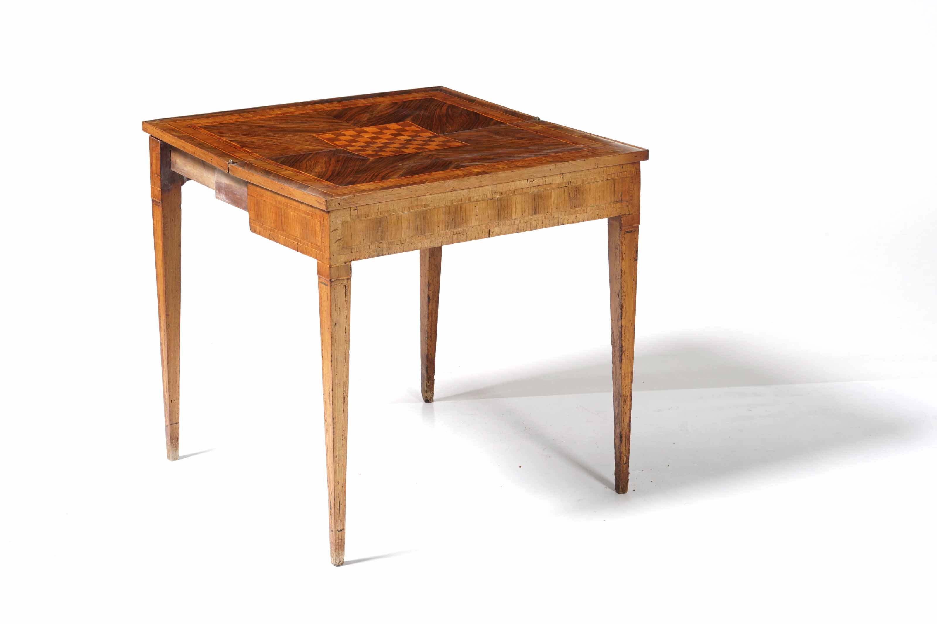 Tavolo da gioco lastronato ed intarsiato. fine XVIII secolo