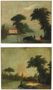Scuola veneta del XVIII-XIX secolo Paesaggi con figure