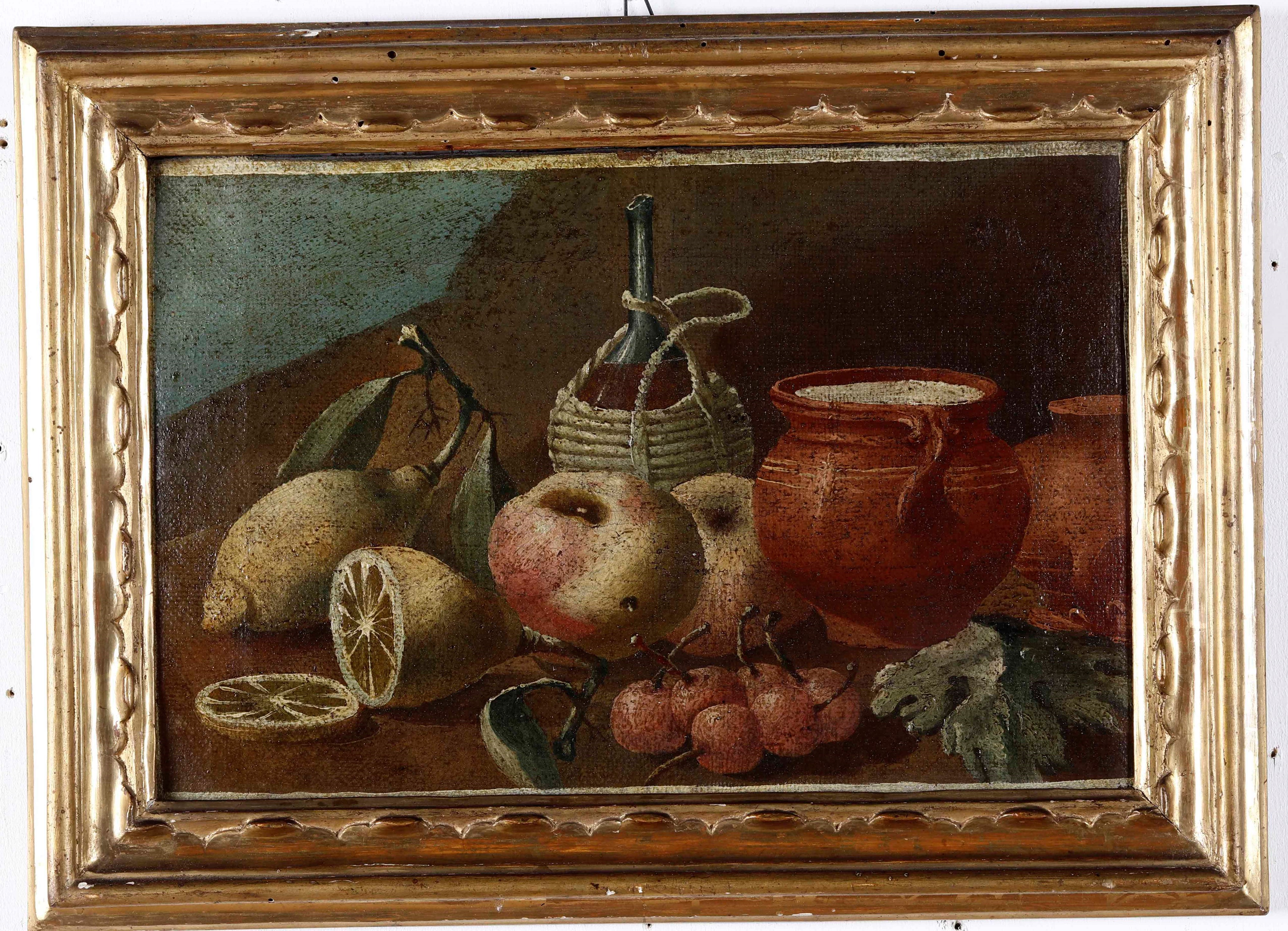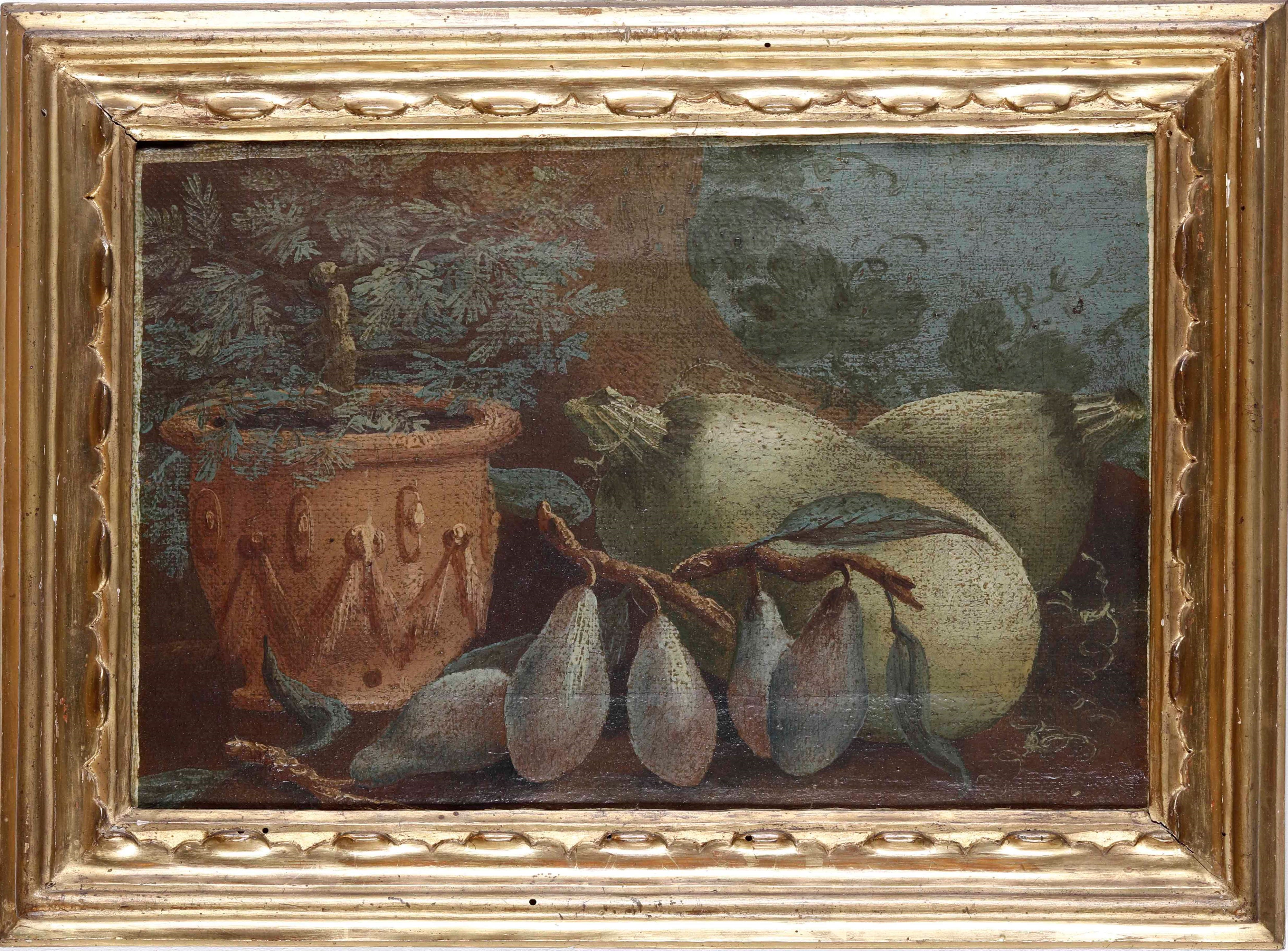 Scuola del XVIII secolo Nature morte con frutti, vasellame e rami