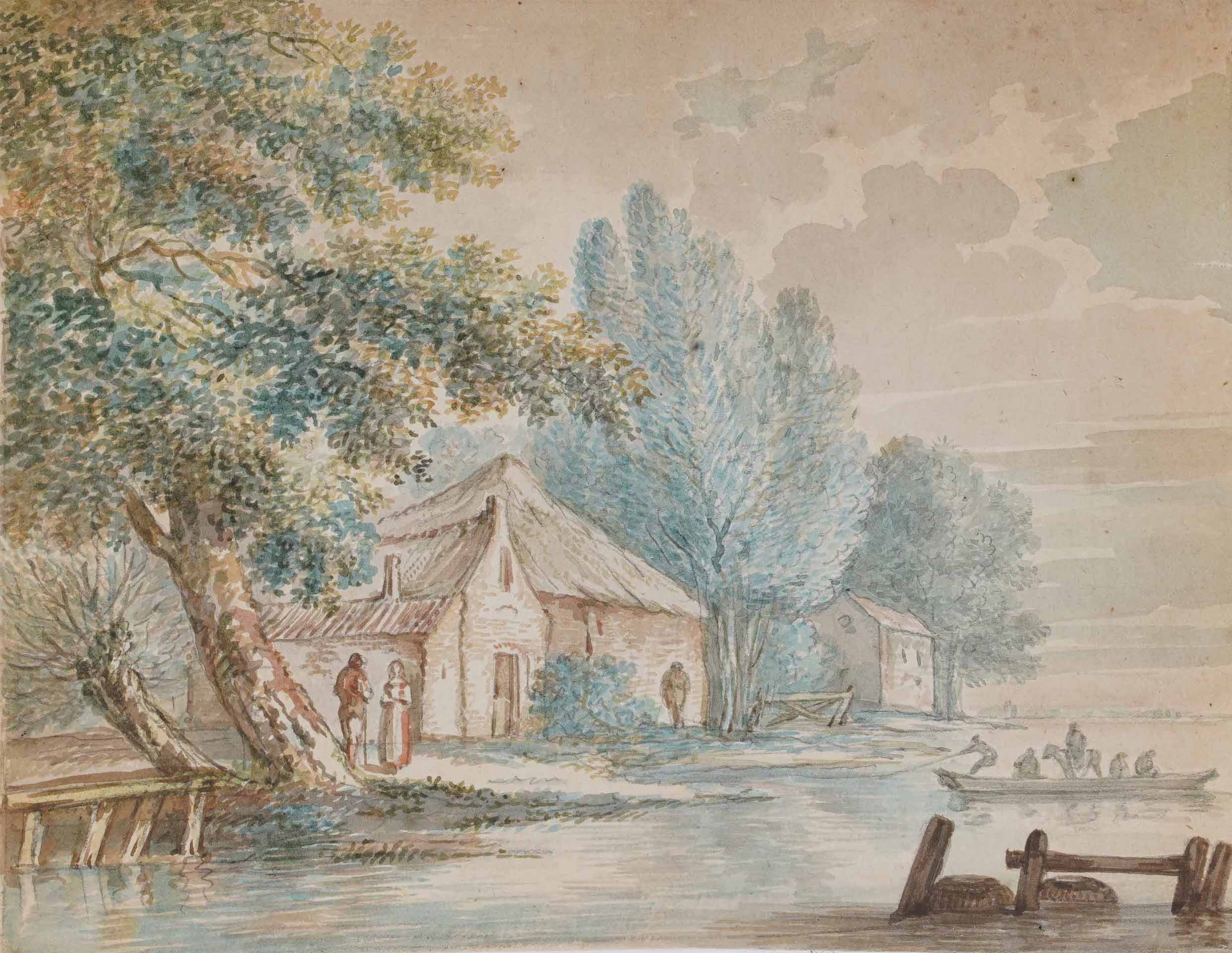 Scuola della fine del XVIII secolo Paesaggio con pastori e contadini