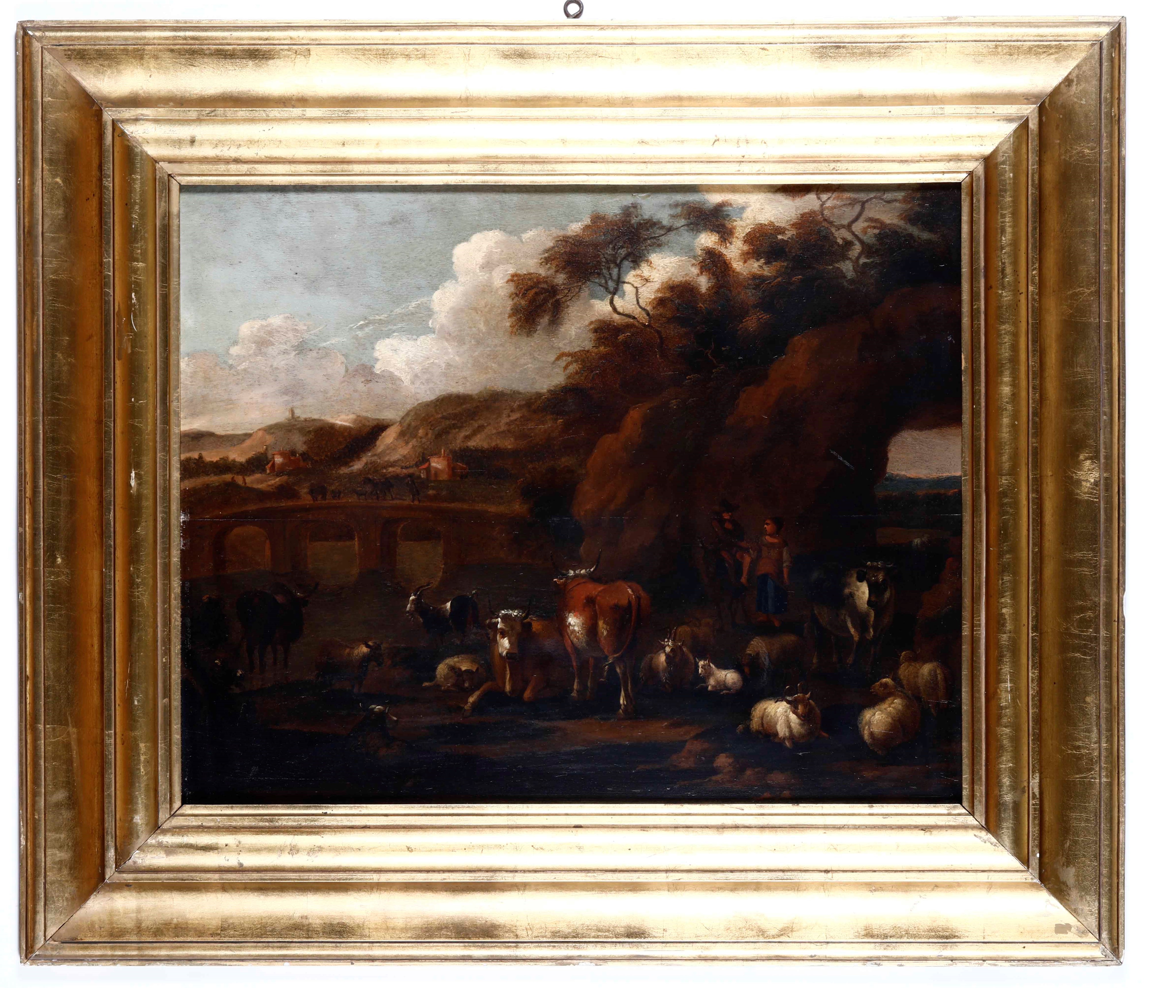Scuola romana del XVIII secolo Paesaggio con pastori e armenti