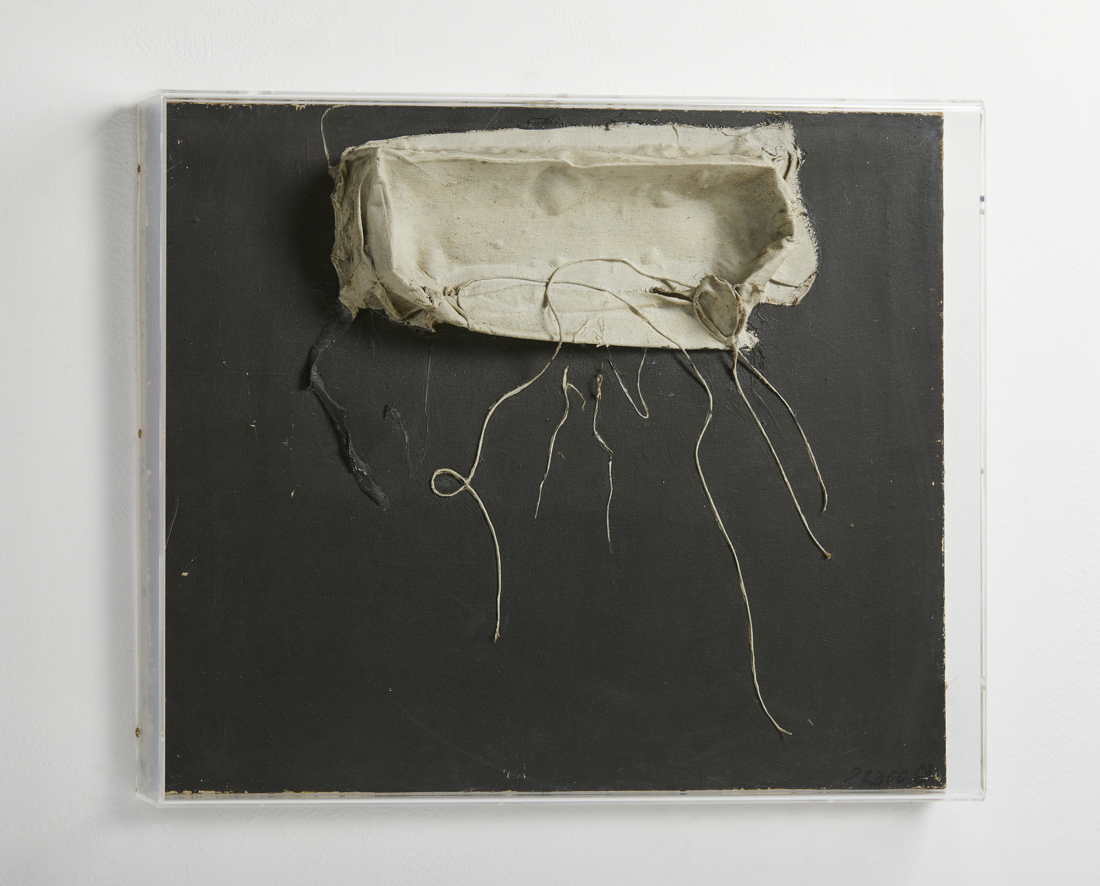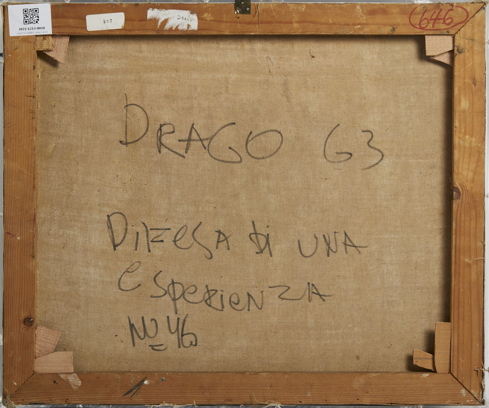 Firma e anno in basso a destra. Al retro titolo, firma e anno. Difetti.