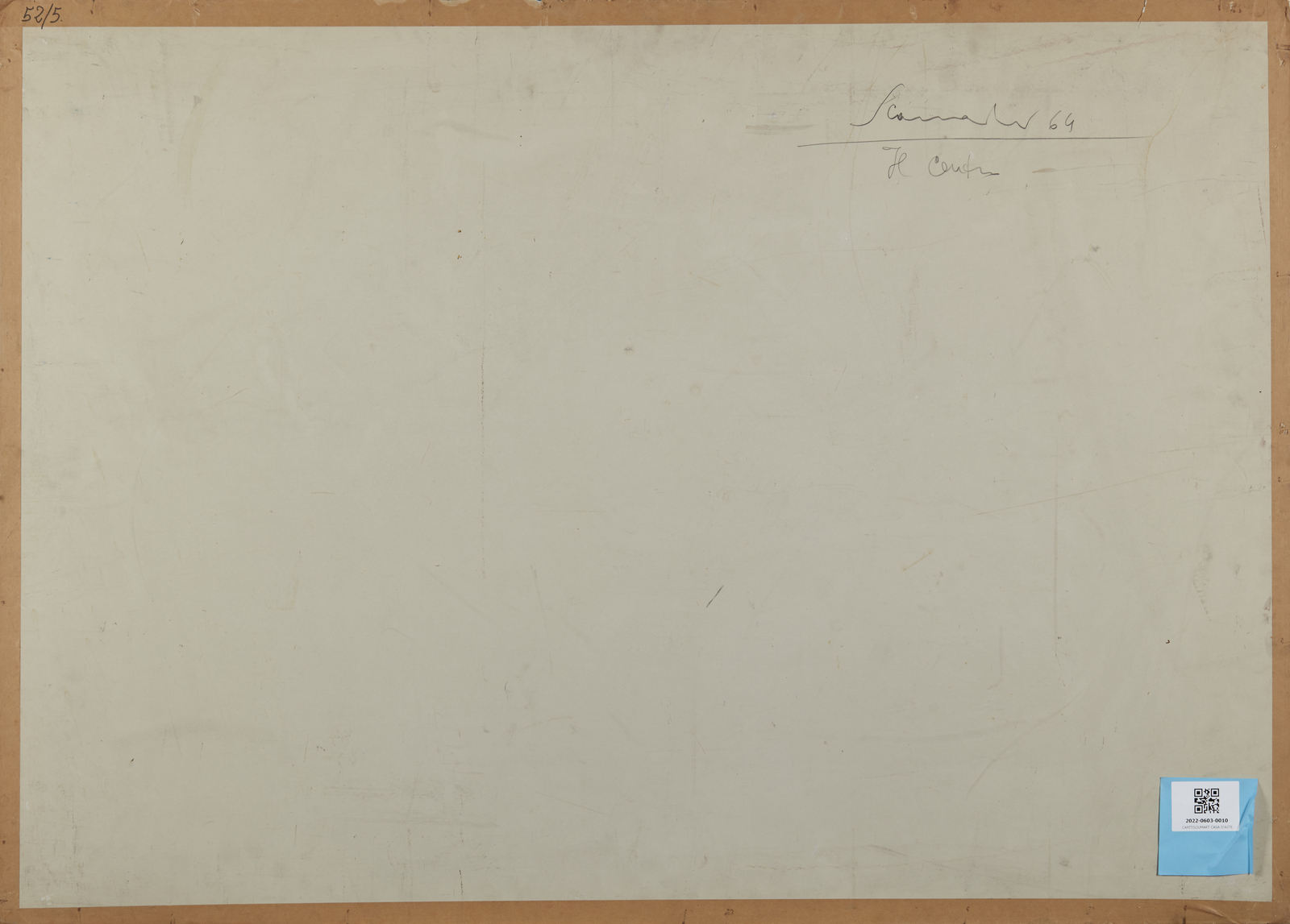 Firma e anno in basso a destra. Al retro titolo, firma e anno. Si ringrazia l'Archivio Emilio Scanavino , Milano, per aver confermato l'autenticità dell'opera. Difetti.