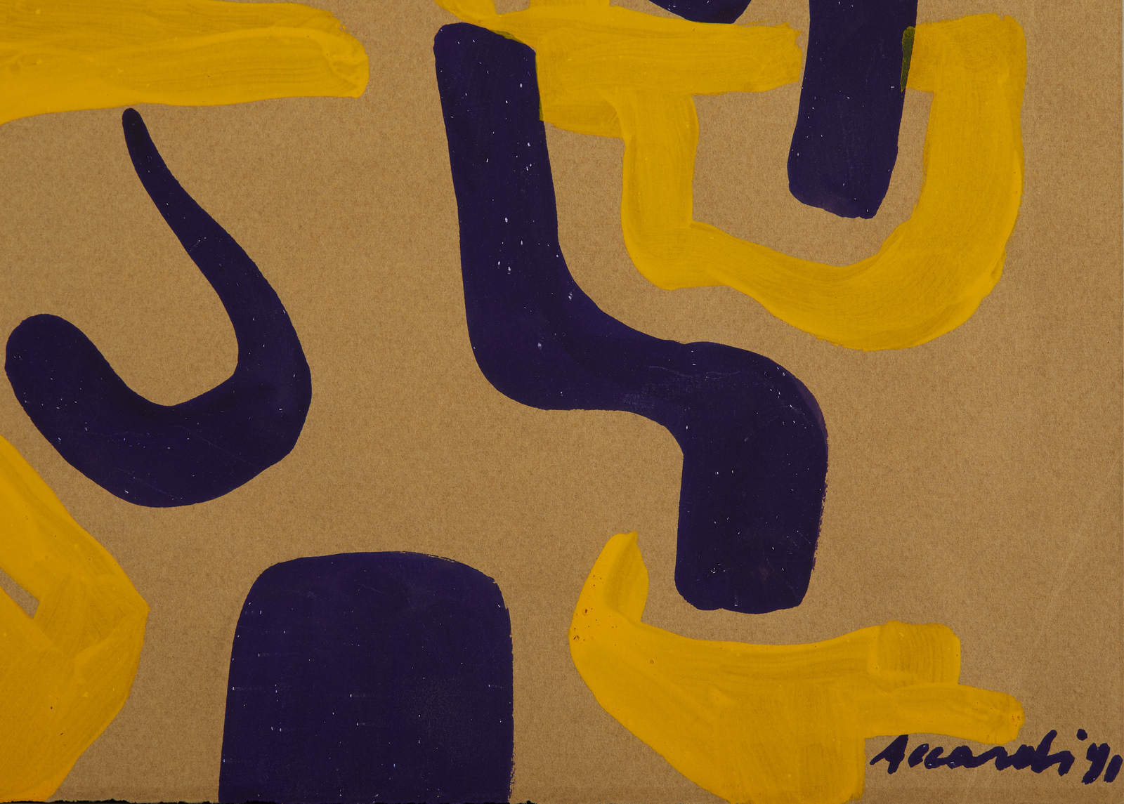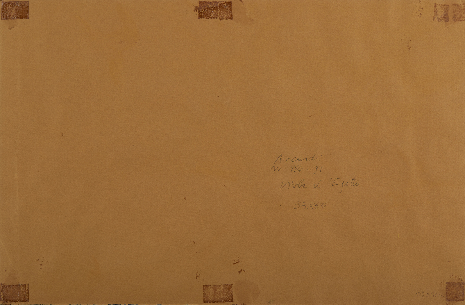 Firma e anno in basso a destra. Al retro firma, titolo e numero d'archivio. Certificato di provenienza e garanzia Provenienza: Centro Arte Milano, Milano. Collezione privata, Avezzano. Si ringrazia l'Archivio Accardi Sanfilippo, Roma, per aver confermato la presenza dell'opera nei loro archivi.