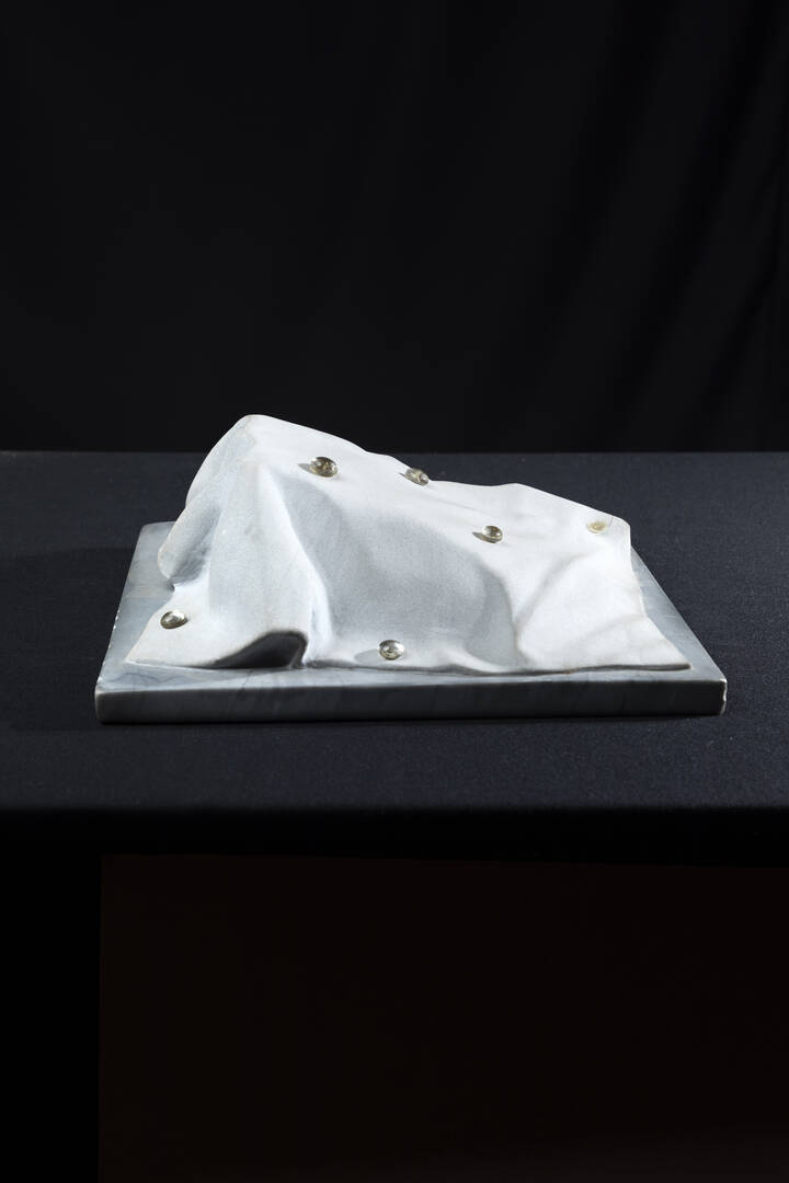 30x30 scultura in marmo ed applicazioni in vetro (una mancante) es. 8/9 Autentica dell'artista su fotografia