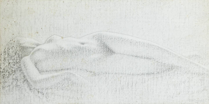 33x64 matita e tempera su carta Opera siglata e datata in basso a destra Già Galleria Fogliato Torino (etichetta al retro)
