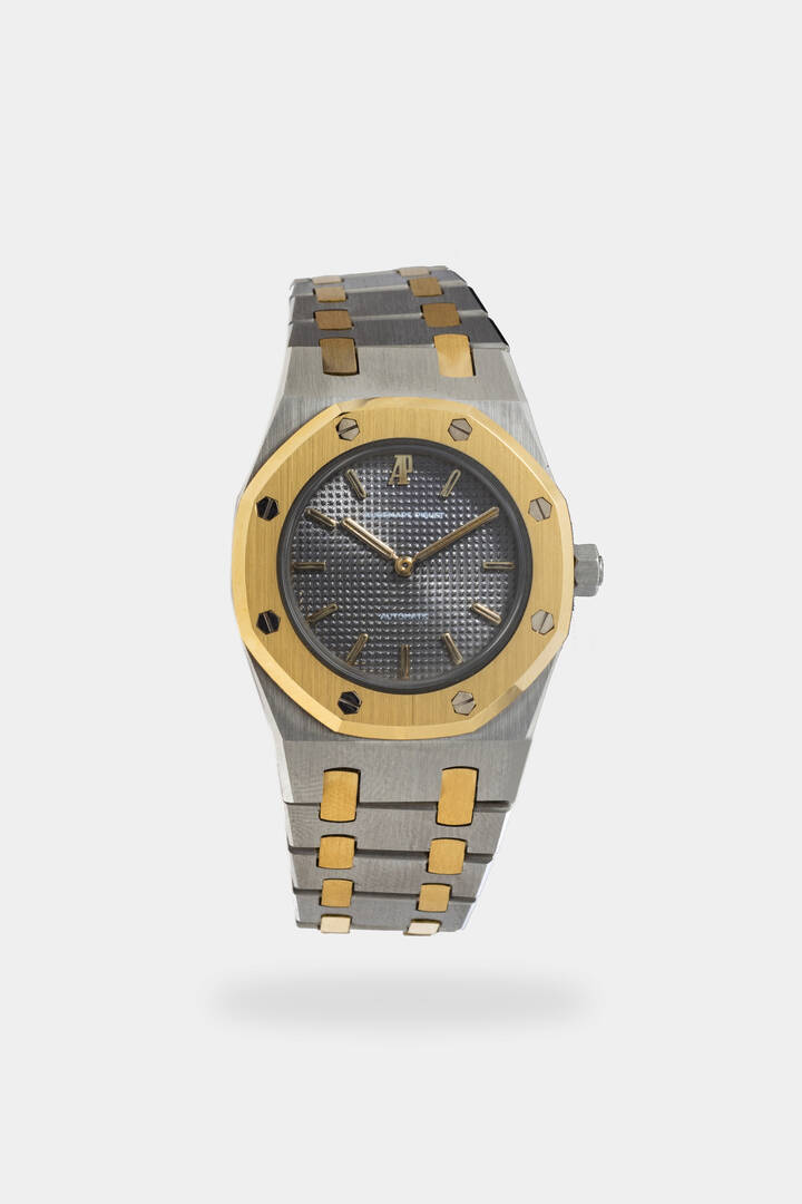 Diam. 29 mm Cassa in acciaio con tipica forma ottagonale in lunetta in oro. Quadrante di colore grigio con indici luminescenti applicati. Bracciale in acciaio e oro integrato con chiusura a scomparsa. Movimento a carica automatica Orologio appena revisionato.
