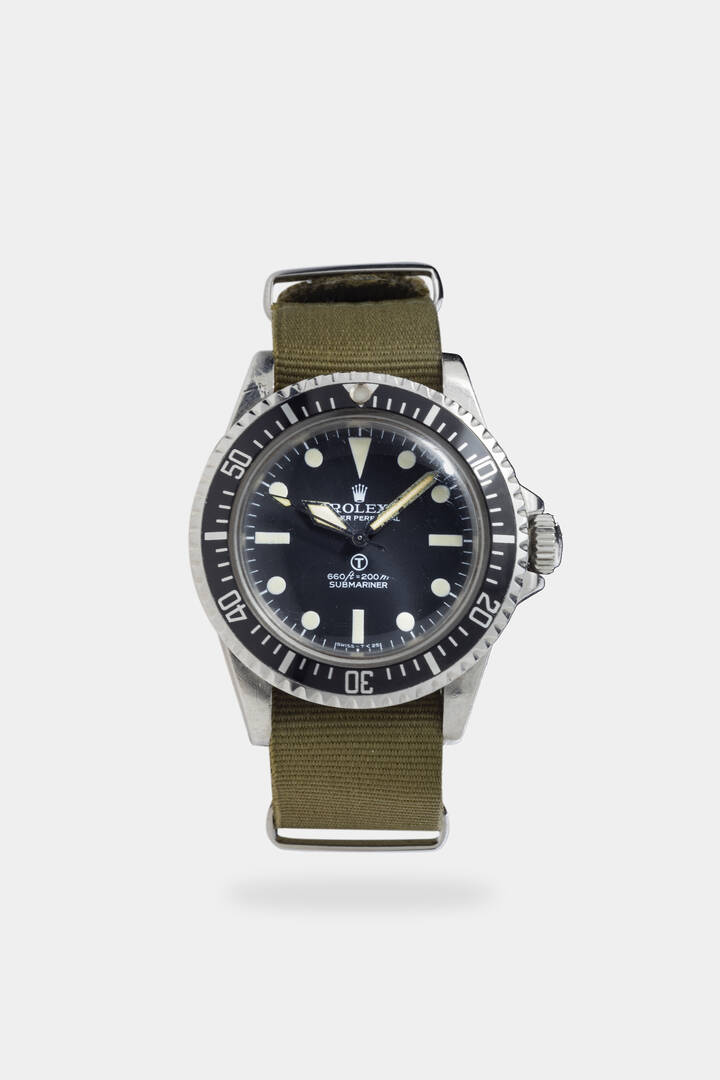 Diam. 40 mm Cassa in acciaio con lunetta girevole bidirezionale successiva. Quadrante “Matte” con indici luminescenti detti “Pallettoni” e minuteria radiale serigrafata. Movimento a carica automatica cal.1520 coperto da un fondello marchiato 5513 al suo interno e con ripetuto il seriale della cassa. Iconico Submariner definito “Milsub” in ottime condizioni frutto della collaborazione tra Rolex ed il Ministero della difesa britannico (MOD). Orologio prodotto in circa 1200 unità di cui solo circa 180 ancora esistenti in tutto il mondo.