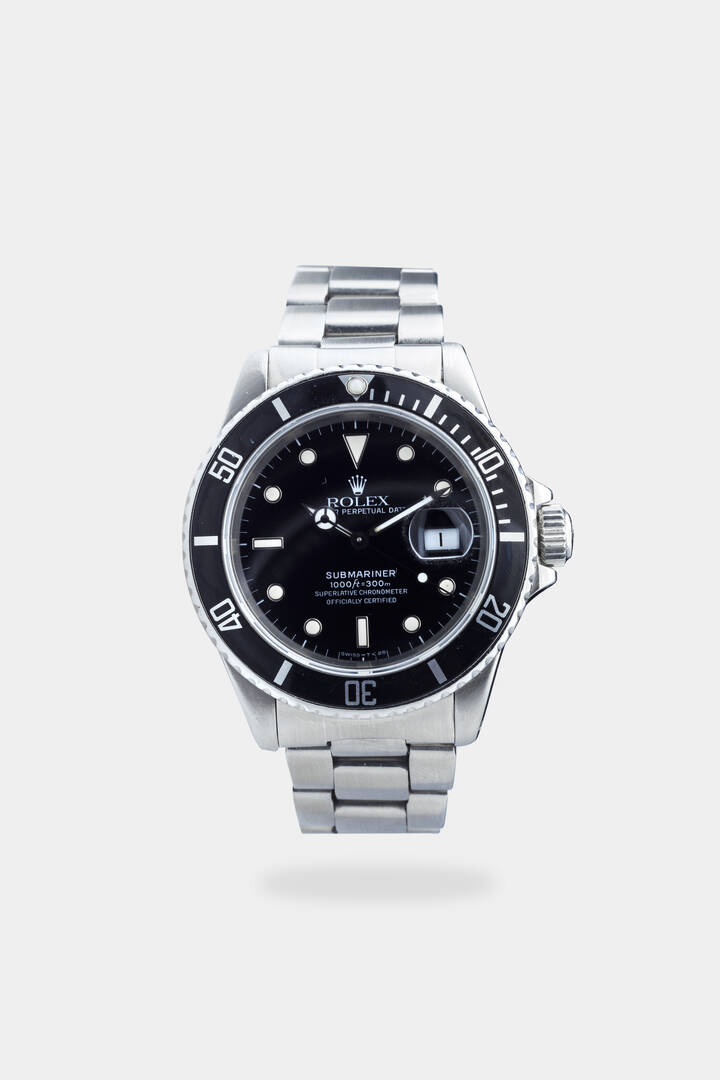 Diam. 40 mm Cassa in acciaio con fondello a vite lunetta girevole monodirezionale con inserto nero. Quadrante nero con indici geometrici luminescenti applicati datario al 3 ed indicazione dei secondi continui al centro. Bracciale Oyster in acciaio integrato con chiusura clasp e prolunga Submariner. Movimento a carica automatica cal.3135.