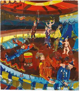 Olio e innesti in ceramica su tela, cm. 140x230 (tela), cm. 160x230 (totale) 1977-78 Storia Collezione privata, [..]