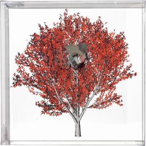 Stampa a colori, tecnica mista e assemblaggio su foglio zincato, in teca, cm. 113x113x25,5 (teca) (2008)