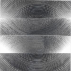 Alluminio e laminato plastico su tavola, cm. 70x70 1962 Al verso: etichetta con firma dell'artista, dati dell'opera [..]