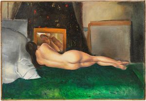 Olio su tela, cm. 110x140 1989 Firma, data e titolo al verso sulla tela: D. Saiani / 1989 / Beppa / e Fausta [..]