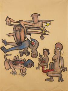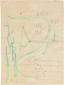 Tecnica mista su carta, cm. 19x14 1984-85 Titolo, scritta e data in alto al centro: Angeli / Aiuto / 1984 / 1 [..]