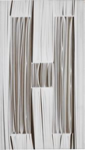 Olio su tela, cm. 100x56,6 1978 Firma, numero, data e titolo al verso sulla tela: U. Mariani / 3/78 / Alfabeto [..]