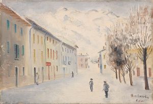 Olio su tela, cm. 38,5x55 Titolo e firma in basso a destra: Bardonecchia / Lilloni. Al verso sul telaio: etichetta [..]