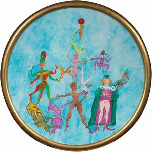 Acquerello su carta, cm. 98 ø (con cornice) 2000 Titolo, firma e data al verso: «13 mascherine senza rime» [..]