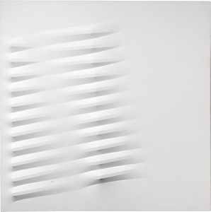 Tela estroflessa e tempera vinilica, cm. 100x100 1983 Firma e data al verso sulla tela: Bonalumi 83.