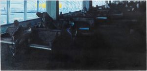 Olio su tela, cm. 52,5x108,5 1970 Titolo, firma e data al verso sulla tela: Attesa di partire / Piero Guccione [..]