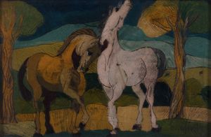 Tecnica mista su cartone, cm. 20x30 ognuno Entrambi con firma in basso e titolo al verso.