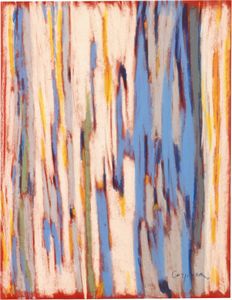 Tempera, pastello e matita su carta, cm. 70x49,7 1993 Titolo, firma e data in basso a destra: Colori verticali [..]