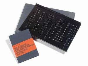 Multiplo composto dal libro «Tesi» e da una tavola in plexiglass, es. 45/150, cm. 30x43,5 (tavola) 1972 Firma, [..]