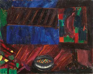Olio su tela, cm. 40x50 1968 Firma in basso a destra: Attardi; firma, data e dedica al verso sulla tela: Attardi [..]