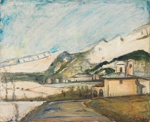 Olio su tela, cm. 50x100 1961 Firma e data in basso a destra: Fabbri Alf. 61; firma al verso sulla tela: Fabbri [..]