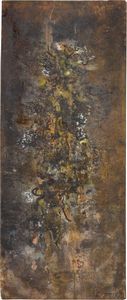 Tecnica mista su tela, cm. 120x49,5 1959 Ideogramma e data in basso a destra: [...] 1959.9.8; firma, titolo e [..]