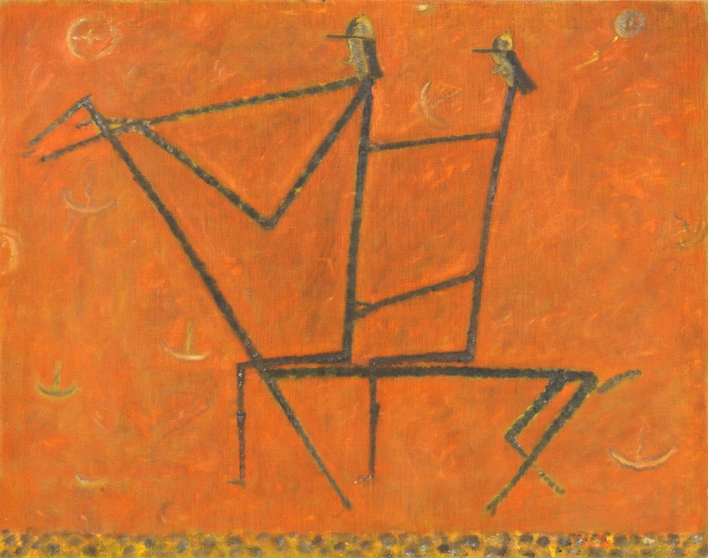 1989 Firma, data e titolo al verso sulla tela: D. Saiani / 1989 / Beppa / e Fausta / a cavallo.