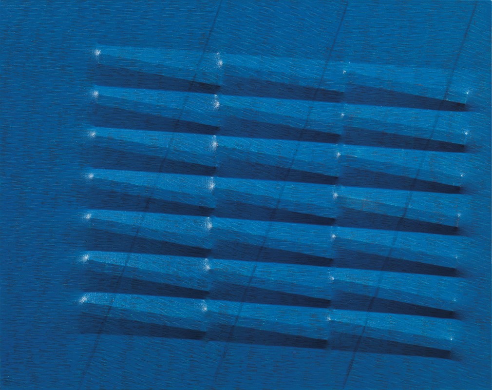 1987 Firma e data al verso sulla tela: Bonalumi 87; sulla tela e sul telaio: n. 1063; sul telaio: timbro ed etichetta con n. 3242 Lattuada Studio, Milano.