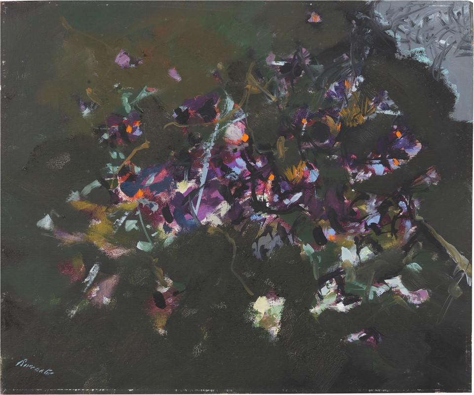 1958 Firma in basso a sinistra: Borsato; firma, titolo e data al verso sulla tela: Borsato / Cespugli / 58.