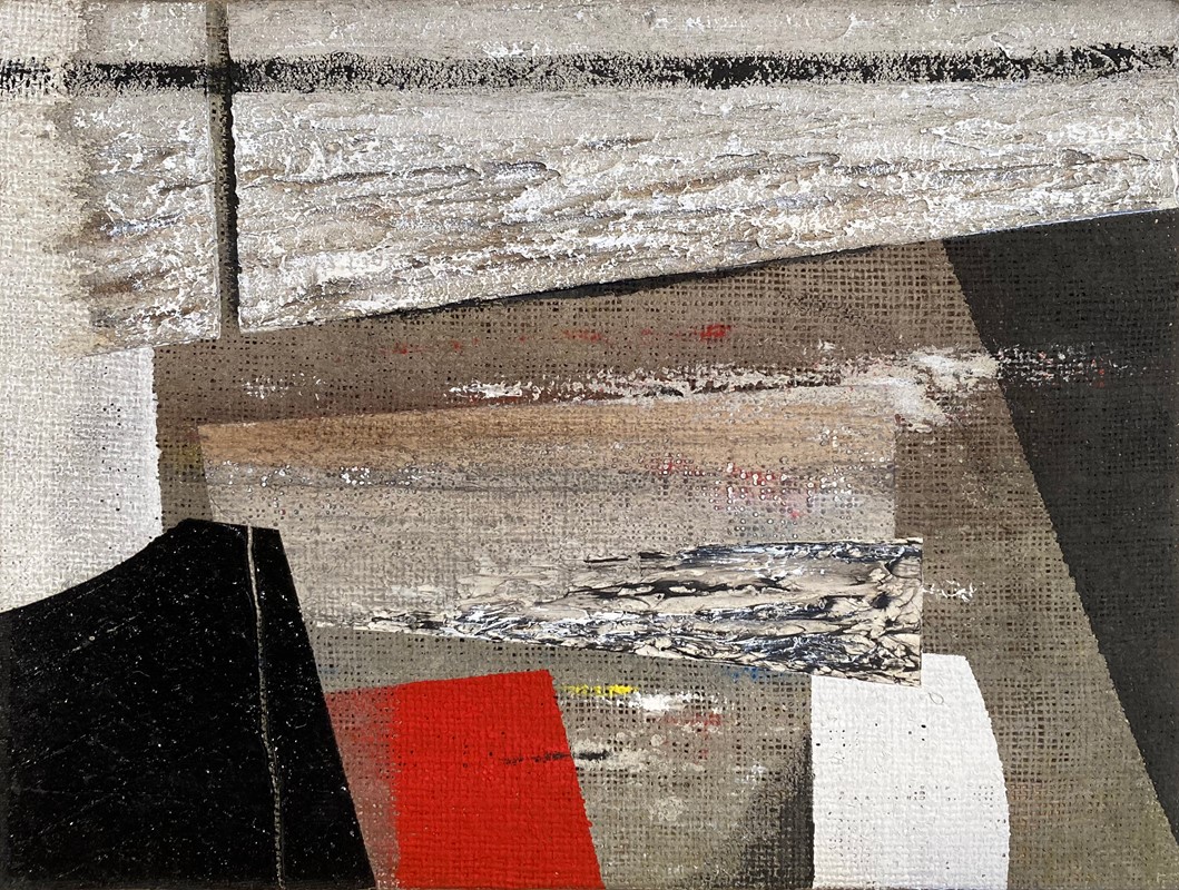 A) Senza titolo, 1996, tecnica mista su tela, cm. 30x40,2. Firma e data al verso sulla tela: R. Pulcinelli '96; B) Il nuovo giorno, 1997, tecnica mista su tavola, cm. 41x30,5. Firma e data al verso: R. Pulcinelli '97: timbro con dati dell'opera e firma dell'artista.