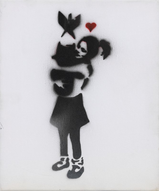 2015 Firma a stencil su un lato della tela: Banksy; firma, titolo e tiratura al verso sul risvolto della tela: Banksy Dismal!!! / 17/25; sulla tela: timbro Dismaland.