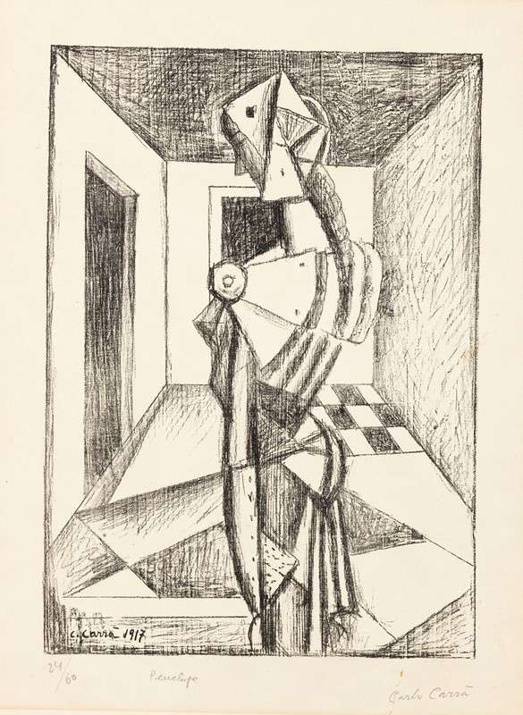 1949-50 Firma e data in lastra in basso a sinistra: C. Carrà 1917, firma a matita sul margine in basso a destra: Carrà, titolo al centro: Penelope, tiratura in basso a sinistra: 24/60.