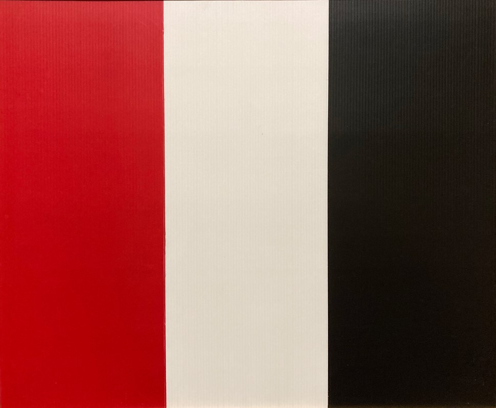 1969 Numero, titolo, firma, data al verso sulla tavola: 2 / Rosso Bianconero / Borella / 69.