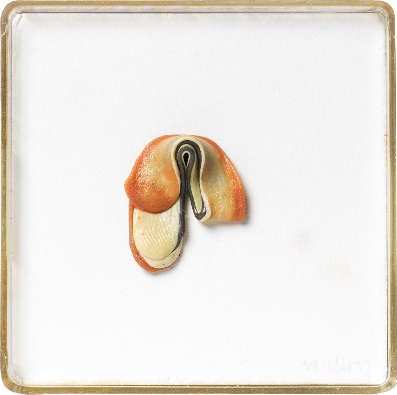 1977 Firma e data in basso a destra: Wilke 77; firma entro etichetta sotto la scatola: Hannah / Wilke.