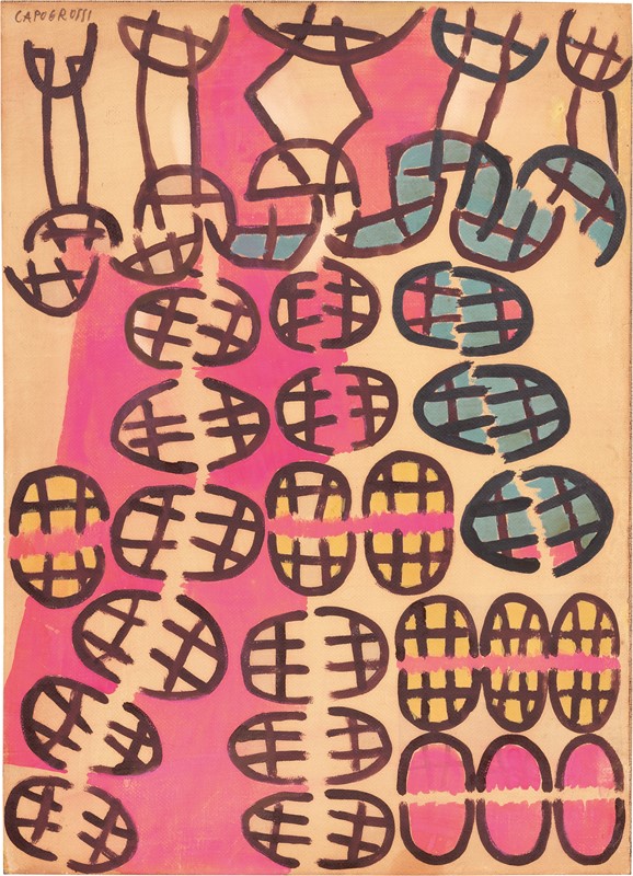 1950 Firma in alto a sinistra: Capogrossi; data e titolo al verso sul telaio: 1950 Sup. G. 99.